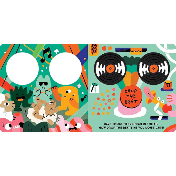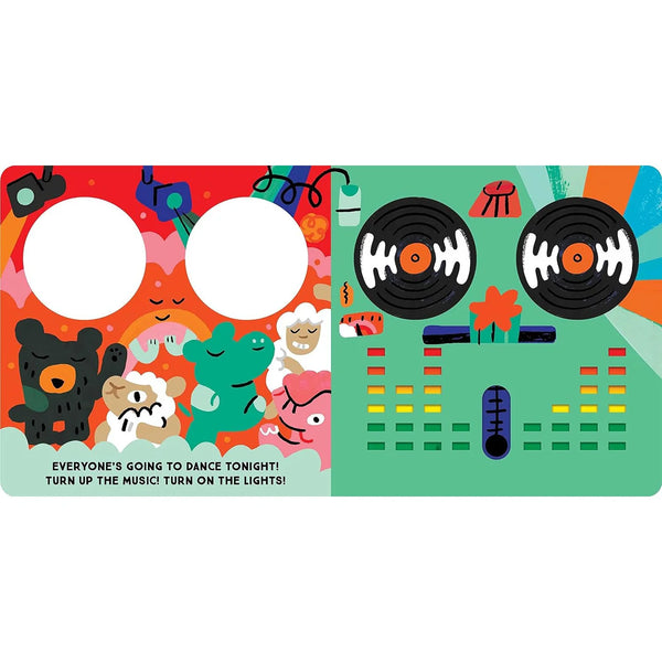 Let’s get this baby dance party started with DJ Baby, a novelty book with record turntables that spin on every page and bright, funky art from the illustrator of A Pizza with Everything on It! This boogie-worthy board book with record-spinning novelties helps DJs-in-training practice their skills! Featuring two turntables at the top of the book, young readers can spin, turn, and mix the moving records as they pump up the jams.