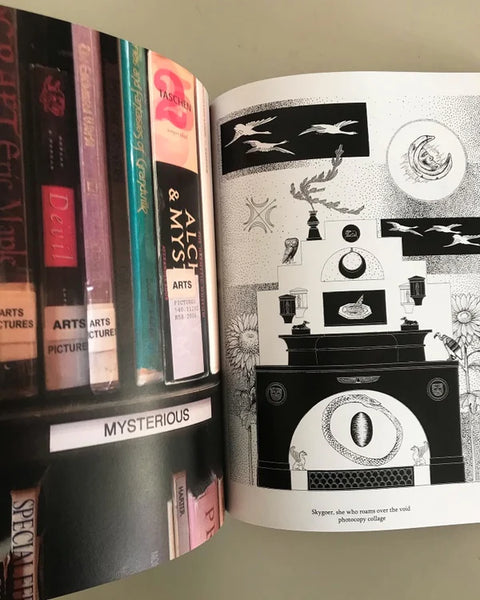 A book made up of photos of the artist's frequent trips to the Toronto Reference Library, including image shopping for photocopying, image research from the stacks and picture files, interior shots of the library, photocopy collages by Nauta and a spread dedicated to beloved architect Raymond Moriyama who designed this special space. At 130 pages the subject matter veers all over the place, showing a roaming curiosity and personal look at the artist's process, interests and inspiration.