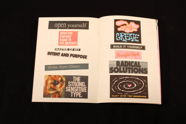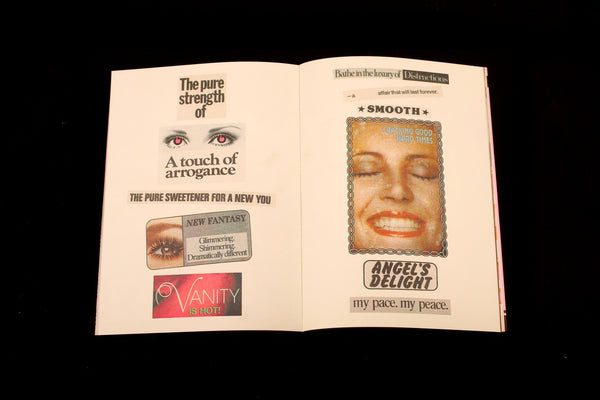 Born out of late nights in the studio and a growing pile of scans, clippings, and sketches, this book is a personal exploration of Hatties collage and illustration practice. It pulls heavily from her personal magazine collection - vintage ads, muscle mags, strange graphics, half-forgotten headlines/copy - and reimagines them through layered compositions with added playful hand-drawn elements.